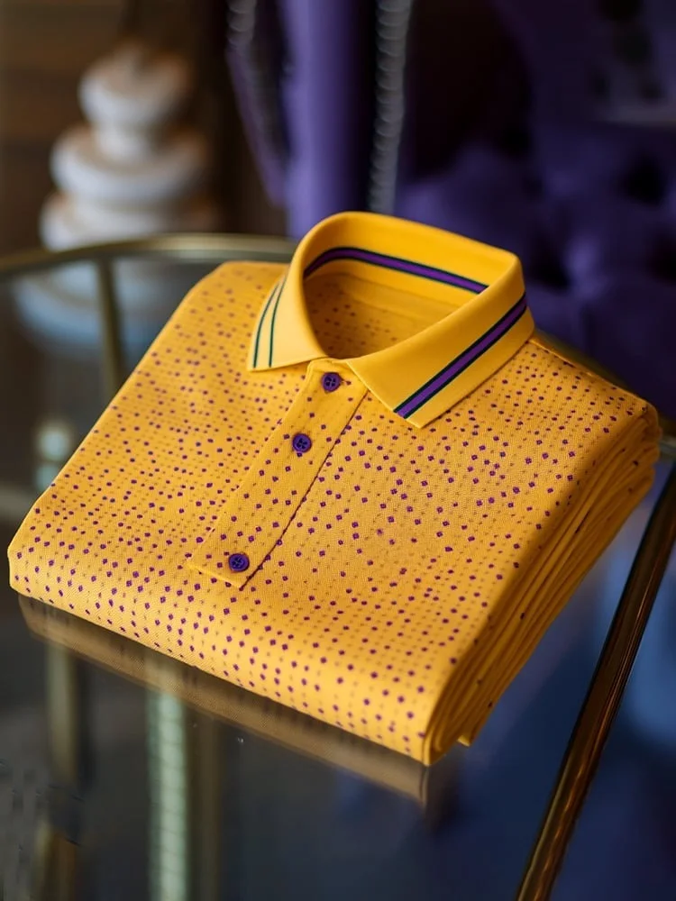 This men's polo shirt features a classic business logo button and a short sleeve design. Made from high-quality polyester, it offers a comfortable fit with its loose fit type. The plaid pattern adds a touch of style, making it suitable for business, sporty, daily, street, and vintage occasions. The shirt has an elastic feature for a secure fit. Available in various sizes, it caters to different preferences.